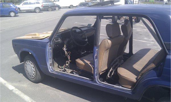 Вот такую картину я увидел на этой неделе возвращаясь домой. Чем кому-то не понравился этот «жигули»? Мне показалось интересным, что у него даже люк есть. Как-то раньше я такого не наблюдал, возможно это какая-нибудь ограниченна люкс серия, а его так просто взяли и наверно на металлолом. На следующий день его уже не было. Хулиганы! : )